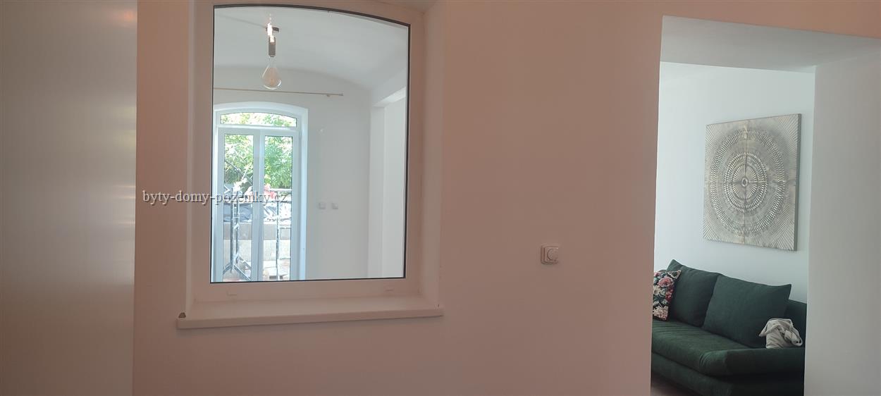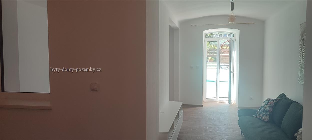 K pronájmu nabízíme nový atypický byt v centru Znojma. Byt ve sníženém přízemí menšího bytového domu je architektonicky velmi zajímavě vyřešený. Celý je koncipován jako moderní, otevřený prostor. Předsíň volně přechází do kuchyně, která je otevřená do bývacího pokoje. Ložnice je částečně oddělena od obývacího pokoje zdí. Z pokoje i ložnice vedou prosklené dveře na malou soukromou terasu. Byt je částečně zařízený. Vytápění je podlahové elektrickým kotlem, ohřev vody el. bojlerem. Nájemné je 12.000,– Kč měsíčně + 500,– Kč záloha na vodné. Elektřina bude přepsána na nájemníky. Vratná kauce 20.000,– Kč. V domě jsou společné prostory pro uskladnění kol, nebo kočárků a sušárna. Volný od 1. 02 2023 |
