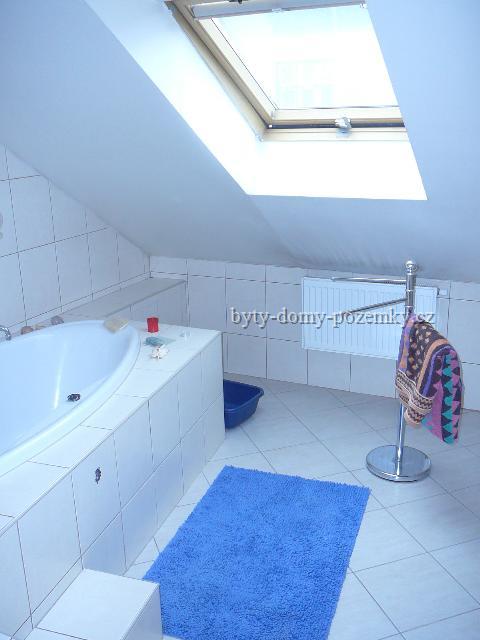 Podkroví se šikmou střechou: ze schodiště vstup do obývacího pokoje (střešní okna s výhledem do zahrady). Jeden pokoj má cca 13 m2, ložnice má cca 13 m2. Třetí pokoj je možné udělat jako kuchyni (místnost s vývody na vodu a elektriku). Koupelna, WC zvlášť.