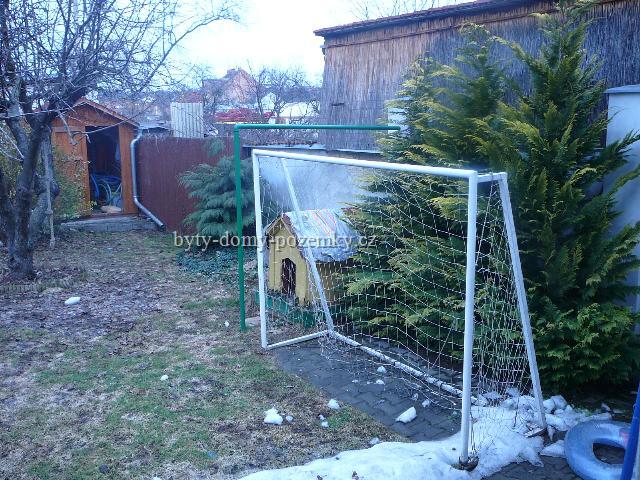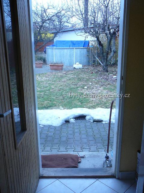 Zahrada: 134 m2, pokrytá trávníkem, zámková dlažba, pergola s posezením, domkem na nářadí a bazénem o rozměrech 5,5x3,8 m a výškou 1,10 m.