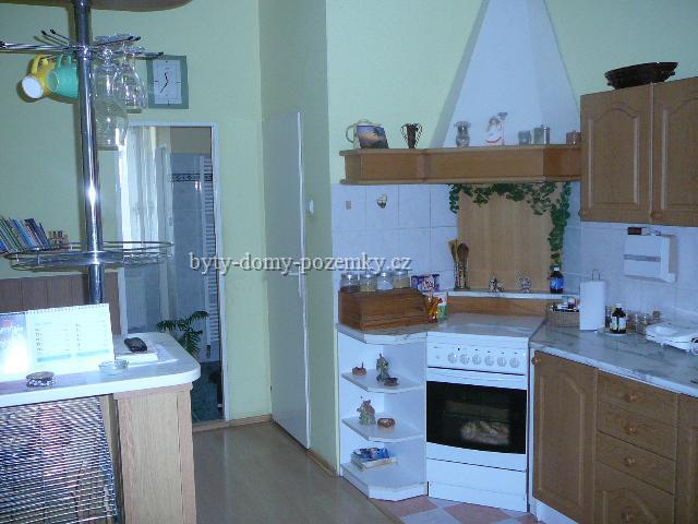 Přízemí 2+1: zádveří, kuchyně cca 25 m2 + spíž, v domě zůstává kuchyňská linka a sporák a skříně v chodbě, jeden pokoj cca 25 m2, druhý pokoj cca 18 m2, vstup do zahrady, schodiště do 1. patra, vchod do sklepa, koupelna, WC zvlášť.
