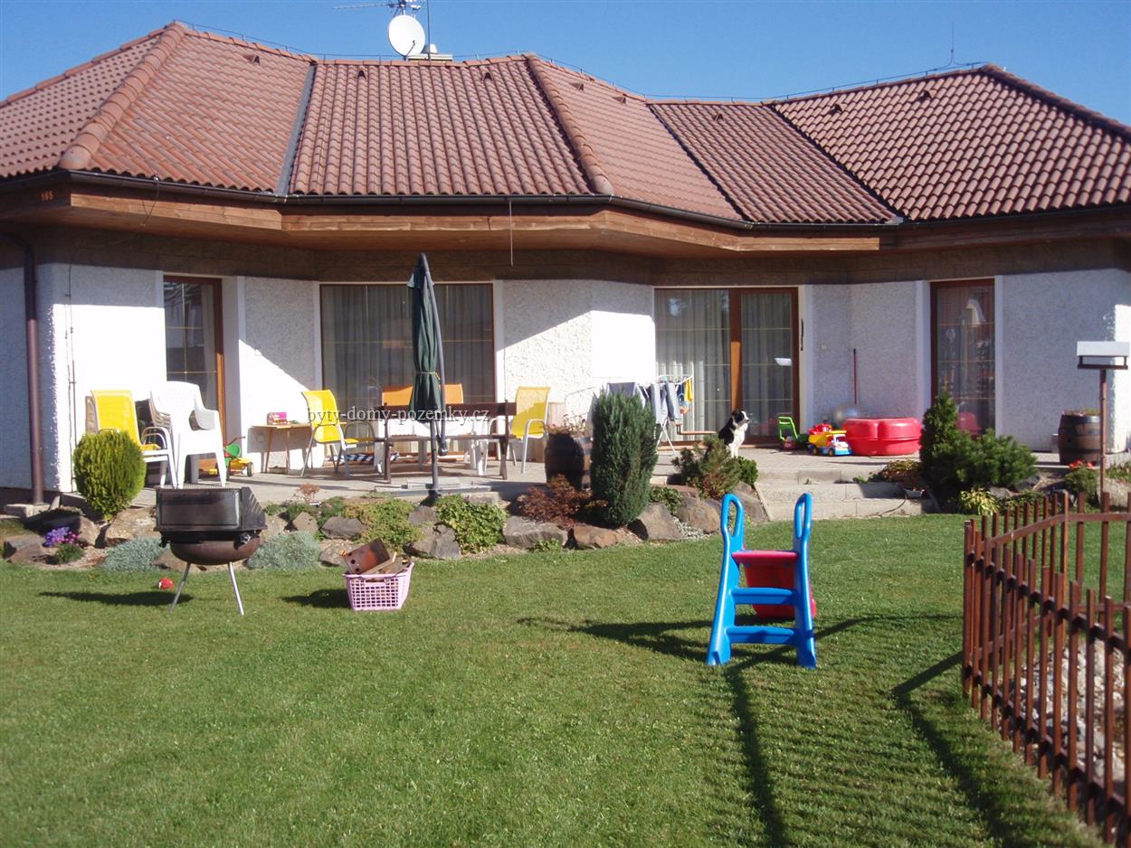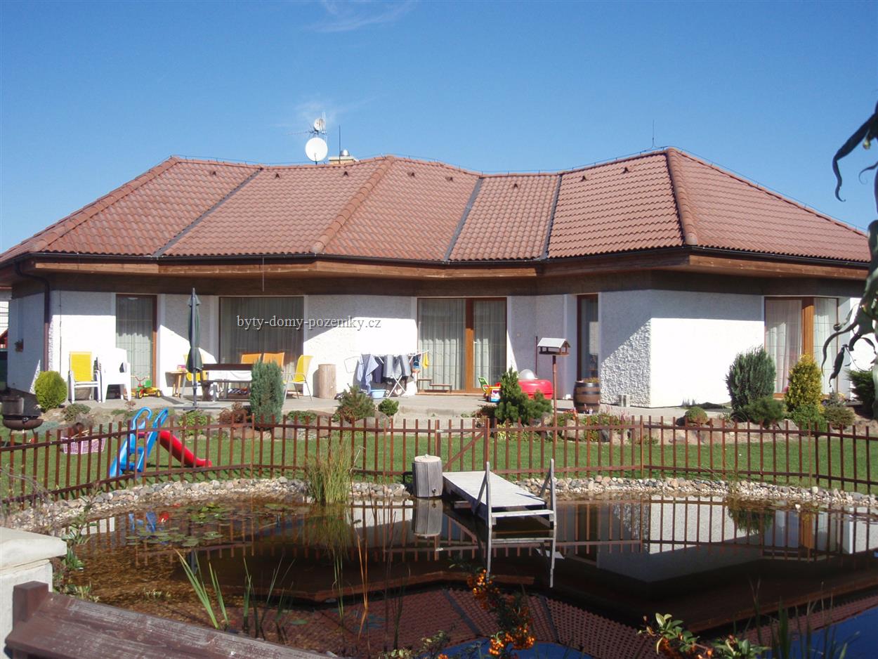 Přímí majitel: Nabízím - prodám velmi luxusní nízkoenergetický! dům v Mukařově, dispozičně 4+1/2 koupelny. Zastavěná plocha je 142 m2 na pozemku 877 m2, slunce v každém ročním období od rána do večera. Jedná se o novostavbu z roku 2006 s velmi, velmi nízkými náklady na provoz. Zdivo je dvojí s meziizolací a důkladně je izolován i strop a podlaha. Unikátní topení (stropní folie) zajišťuje regulaci v každé místnosti nezávisle a dům komfortně vyhřeje. Pro pohodlí je podlahové topení v koupelnách a vstupech do domu. Krbová kamna jen dokreslí pohodu "rodinného krbu". Dům má dvoje vchodové dveře, lze ho tedy využít jako "dvougenerační", nebo lze druhý vstup využít pro návštěvy nebo pro komerční účely jako pracovnu a kancelář. Všechny pokoje jsou maximálně světlé a ze všech pokojů je možný vstup na terasu (která je částečně zastřešená a je po celé východní, jižní i západní straně domu) a následně na zahradu. Vše je dokonale promyšleno a precizně realizováno. Kvalitní dlažby, parkety, francouzká okna, obložkové dveře i rozdělení místností a chodeb. Vše s důrazem na nízkoenergetičnost, ekologii a bezbariérnost. Na upravené zahradě je koupací jezírko, zahradní domek a pergola jako parkovací stání. V domě je nainstalován bezpečnostní systém, vrata jsou na dálkové ovládání. Dům je otevřen na jih, pozemek je situován v klidné ne/průjezdné ulici, jih je otevřen a okolní zástavba je realizována - nic v budoucnu nepřekvapí a klid je zaručen. V Mukařově je veškerá občanská vybavenost (obchody, restaurace, pošta, lékárna, doktoři, zubaři, škola, školky atd.). Autobusová zastávka je cca 7 min. chůze a spoje na Prahu jezdí každých 5-10 min. Velmi klidná lokalita a krásná příroda nedaleko Prahy. Vhodné pro seniory i rodiny s dětmi! Dům je nutné vidět, zveme Vás na prohlídku. RK jistě NE! |