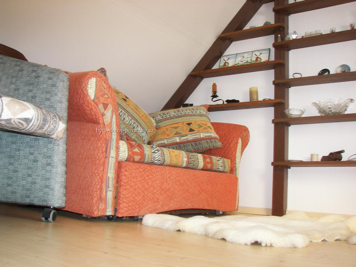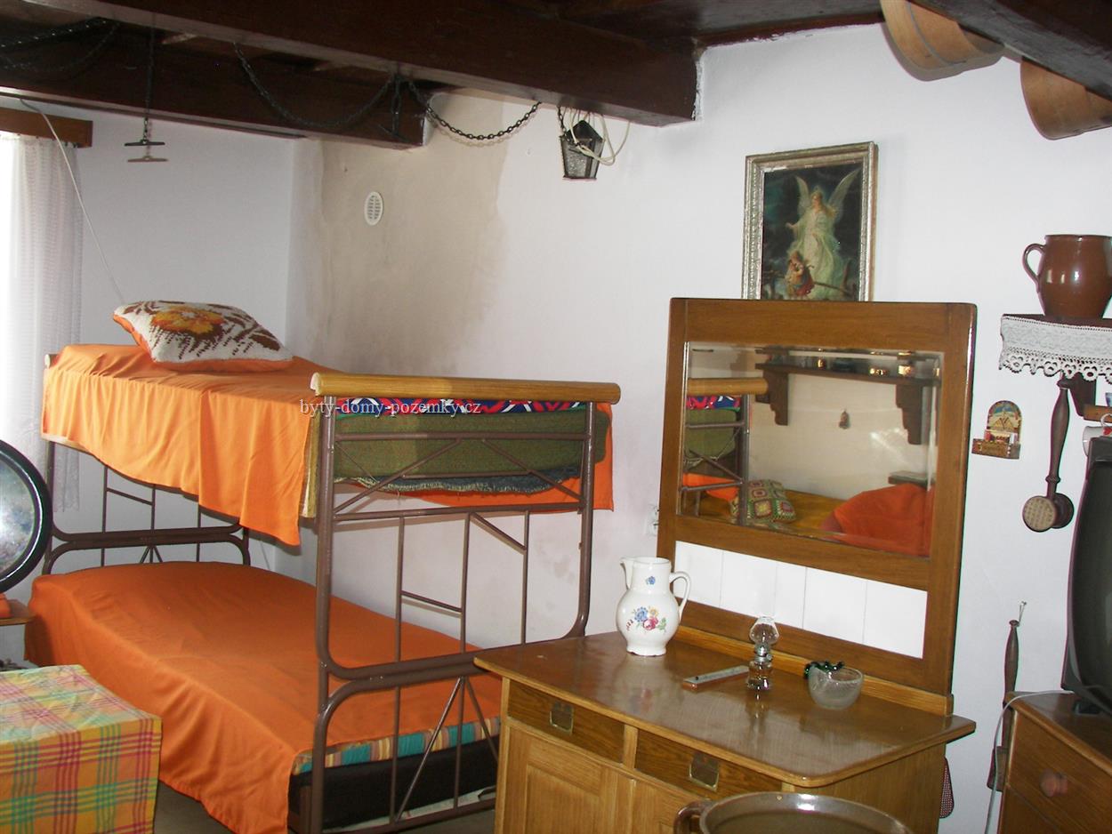 Zastavěná plocha 50m2 Plocha zahrady 103m2 Dálkový vodovod a plynovod. Veřejná kanalizace Telefon, Internet Jednopodlažní chalupa s podkrovím a dalších prostorách, jako jsou půda a dílna s komorou. V přízemí je vstupní hala, která současně slouží, jako jídelna, kuchyně (s kuchyňskou linkou zn. Koryna s plynovým sporákem, mikrovlnou troubou a ledničkou) a z ní je vchod do prostorné koupelny spojené s WC. Vlevo z haly je obývací pokoj s malým krbem. Z kuchyně jsou zasouvací schůdky, které vedou do ložnice v podkroví. Vše je zařízeno tak, že dům lze okamžitě trvale užívat. Vytápění je plynem, instalován je kombinovaný plynový kotel a teplo je rozvedeno do všech místností, kde jsou rozmístěny radiátory. Elektrické rozvody jsou po celém domě. Domek se prodává včetně zařízení a je vhodný pro trvalé bydlení pro 2 osoby . Popis pozemku: Malý pozemek tvoří zahrádka s růžemi, vinnou révou a záhonky k pěstování čehokoliv. Ne RK! |