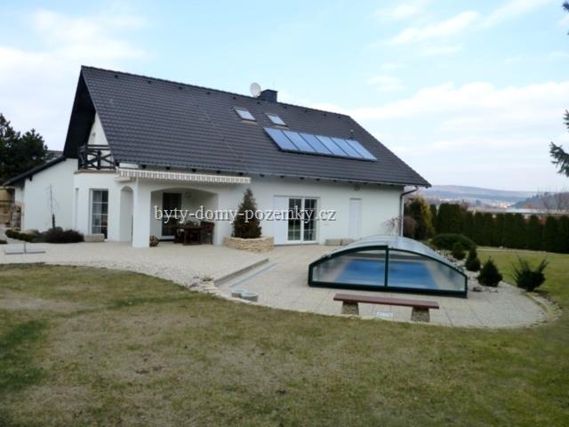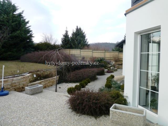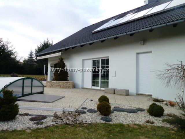 Nabízíme k prodeji nadstandardní rodinnou vilu 5+1 v Bílovicích nad Svitavou, vyhledávaná lokalita klienty s požadavkem na klidné bydlení v okolí lesů a přírody Moravského krasu. Jedná se o luxusní a precizně provedenou stavbu s použitím kvalitních německých materiálů, kde kvalita i funkčnost jsou neměnné již od kolaudace v r. 1999. Tato samostatně stojící vila se sedlovou střechou je postavena na pozemku o CP 1795 m2, jehož částí je také soukromá příjezdová cesta. ZP domu je 230 m2 a součástí jsou také dvě garáže s dalším zastřešeným stáním. Nad garážemi je samostatný půdní prostor k uskladnění. Dispozičně se jedná o moderně řešený otevřený obytný prostor přízemí, kde je vstupní hala se šatnou 13,3 m2 a samonosným schodištěm do prvního patra. Ze vstupní haly vejdeme přímo do obývací místnosti spojené s jídelnou 43,19 m2, kuchyně 15,71 m2 se spíží 2,73 m2, do chodby se vstupy do koupelny se sprchovým koutem a WC 4,51 m2 a pokoje 10,19 m2. Obytná část je orientována na východní a jižní stranu, kde velkými francouzskými okny a dveřmi je prosvětlena během celého dne. V obývacím pokoji se nachází kvalitní krbová kamna a také dveře do pracovny a technické místnosti. Kuchyně byla vyráběna na míru a je vybavena spotřebiči zn. Miele včetně parní trouby, elektrické trouby, sklokeramické desky, myčky nádobí, drtiče odpadů a výkonného odsávače par. V patře z haly 23,25 m2 jsou vstupy do dvou dětských pokojů 17,44+ 19,91 m2 s klimatizací a společnou lodžií 6,77 m2, které jsou orientovány na jih. Dále je zde ložnice se šatnou 24,16 m2 s vlastní lodžií a koupelna s rohovou vanou, WC, bidetem a dvěma umývadly 10,55 m2. Zde je umístěn i shoz prádla. Půdní prostor 51 m2 k uskladnění. Celý dům je napájen el. energií v kombinaci se solární energií, která rovněž zajišťuje ohřev vody do velkých zásobníků s okruhovými rozvody do celého domu i venkovního krytého bazénu 6 x 3,5 m. Každé patro i místnosti mají své vlastní okruhy, což umožňuje regulaci topení a tím i spotřebu energie při podlahovém vytápění. Jedná se o revoluční technologii. Všechna okna mají venkovní zabezpečovací rolety ovládané zevnitř. Celý pozemek je ohraničen vzrostlými tújemi, což dodává zahradě a majitelům naprosté soukromí při relaxaci na terase nebo u bazénu. Pod zahradou je zbudován menší sklípek pro uskladnění zeleniny a ovoce. Tuto vilu doporučujeme klientům, kteří si potrpí na kvalitu a jednoduché ovládání domu, což zaručuje minimální časovou i finanční náročnost na údržbu. Také lokalita a samotné umístění nemovitosti nabízí naprosté soukromí a klid. V obci je veškerá občanská vybavenost včetně bezproblémového zajištění dopravy do centra Brna cca 15 min. IDS a vlakem. Energetický štítek náročnosti je vypracován a bude předložen při prohlídce nemovitosti. Pro více informací kontaktujte makléře. Shlédněte také video k nemovitosti na stránkách RK. |